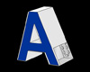 Buchstabenunterteil bestehend aus Rückwand und Zarge aus Aluminiumblech. Buchstabenoberteil bestehend aus Spiegel und Zarge aus farbig transluzentem (milchig durchscheinendes) Plexiglas chemisch stumpf verschweißt.
